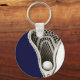 Pulseira personalizada de lacrosse com design de taco de lacrosse em fundo azul marinho. Edite o texto para personalizar para jogador, treinador ou fã de esportes.