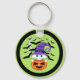 Chaveiro Pumpkin assustador com Gatinho branco e bruxas