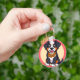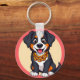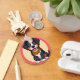 Uma ilustração encantadora de um filhote de desenho animado, sentado sobre um fundo circular vibrante. Perfeito para ilustrações infantis, temas de animais de estimação e designs alegres.