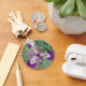 This keychain features a photograph of a purple Iris. The photo was taken using macro photography for a detailed result. This beautiful flower blooms every year in my garden pond and always makes me smile.