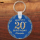 Chaveiro de quadro brilhante azul e Dourado Festa de aniversário 20. Para mais personalização, clique no botão "Personalizar" e use nossa ferramenta de design para modificar este modelo.
