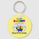 Este chaveiro do Orgulho Arco-Íris apresenta um bando de ovelhas brancas. Em frente ao bando há uma ovelha singular com as cores da bandeira LGBTQ. O texto diz: "Eu sou a ovelha do RAINBOW da família." A cor de fundo pode ser personalizada.