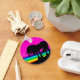 Um brilhante, ousado e belo unicórnio chamado chaveiro de Aniversário com um unicórnio místico negro e um fundo arco-íris. Uma bela ideia de presente de festa de aniversário para os participantes da festa!