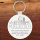 Uma cadeia-chave única que representa a bela cidade de Raleigh, NC. Este chaveiro apresenta uma ilustração estilizada do horizonte único da cidade com seu nome embaixo. Por baixo do nome da cidade está um lugar para o seu slogan ou afirmação exclusivo sobre a sua cidade favorita.