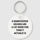 Escolhi um chaveiro que faz alusão ao apelido do presenteado. Muito difícil encontrar presentes originais. É só um chaveiro simples; é barato, mas bonito. O importante era poder dar o recado, e o produto é bom e é atraente. O problema é que, por ser importado, custou imposto e embalagens bem acima do próprio produto. Sim, o produto é perfeito. Muito bonito.