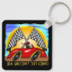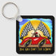 A Keychainf legal apresenta IconDoÉ a pintura digital original de uma garota ao volante de um pequeno carro esportivo vermelho com bandeiras controladas batendo na brisa atrás. O campo de texto personalizável assume como padrão "Raparigas Reais Não Texto e Unidade". Manter, Alterar ou Limpar.