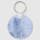 Um chaveiro com uma fotografia de uma raposa ártica branca. Uma paisagem de neve invertida rodeia esta criatura encantadora.
