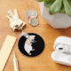 Este moderno chaveiro de botão surreal, zip pull mostra meu retrato de um garçom de ratos carregando uma bandeja de vidros contra um fundo preto. Essa corrente de chaves faria um presente adorável, e um acessório incomum. O retrato é baseado em um rato de estimação real, Reilly.
