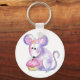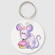Esta é uma pintura de mídia mista original de um mouse púrpura caprichoso com um cupcake rosa.