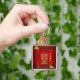 Design de carregando de palanquim chinês estilizado recorte de papel redondo de ouro de um rato + saudação chinesa + ouro 2020 + quadro de ouro chinês + Duas nuvens auspiciosas. Design sobre chaveiro de metal quadrado com fundo vermelho. Você pode mudar facilmente a cor de fundo e a posição de alguns elementos do design clicando no botão personalizar. Está disponível uma versão com o mesmo palanquino + outro recorte de papel de rato. Correspondência de cartão postal, cartão de saudação, convite, produtos de artesanato e muito mais... Perfeito para o Ano Novo Chinês do Rato 2020.