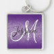 Crie seu próprio roxo real e faux amethyst glitter ombre monogrammed chaveiro. Personalize o monograma personalizado preto e branco... incluindo cores de fontes, estilos de caligrafia e tamanhos. O brilho roxo claro é um efeito fotográfico impresso do livro. O efeito do filtro de imagem cria estilos de ombre exclusivos. Design de foto de um boque de inclinação roxa para ela.