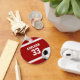 Você gostaria deste design numa combinação de cores diferente? Entre em contato conosco através da loja GiftsBonanza antes da compra e ficaremos felizes em ajudar com sua solicitação personalizada. Perfeito para o fã de futebol ou jogador de futebol cujas cores de equipe são vermelhas e brancas, com um design de estilo de camisa de futebol em vermelho com listras brancas e texto personalizável para seu nome e número. Uma bola de futebol também faz parte do design. Um presente de futebol personalizado e divertido.