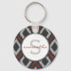 Padrão de ikat tribal vermelho e cinza com monograma.