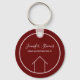Este chaveiro moderno de corretor é personalizado com o nome da sua empresa real sob o nome do agente na tipografia quic. Esta corrente mínima de burgundy vermelha e branca apresenta um desenho simples de uma casa. Presente contemporâneo para um agente que trabalha para ajudá-lo a comprar de uma casa.
