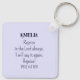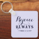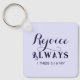Este belo chaveiro apresenta versos Bíblias sobre regozijo junto com o nome personalizável no verso.