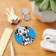 Ilustração de cão Dalmático com fundo azul arrojado e design de coleira detalhada.
