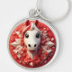 Chaveiro Retrato Geométrico em Vermelho e Branco Vibrantes