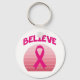 Design de fita cor-de-rosa com estilo retrorreflector com o texto "Acreditar".