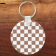 Os quadrados de cheques são um presente de retrato geométrico branco-marrom para qualquer um. Legal padrão quadrado geométrico verificado por retrô. Azulejo Vintage mousse castanho e checador branco moderno.