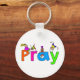 Uma bela ilustração cartoon de meninos e meninas felizes e diversos escalando em letras gigantes do alfabeto que soletra a palavra PRAY. Imagem disponível em vários presentes e produtos. Chaveiros. teclas.