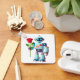 Um robô animado e adorável ao estilo cartoon é a peça central dessa imagem, projetada com cores brilhantes e vibrantes. Ele segura uma rosa vermelha solteiro delicadamente em sua mão metálica, simbolizando amor e afeto. O design geral é brincalhão, encantador, e perfeito para captar atenção, fazer ideal para o Dia de os namorados. pelos 'martinspixs'.