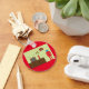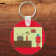 Um robô vermelho retrógrado numa sala de estar. Esta design parece realmente eficaz nestes Chaveiro