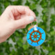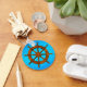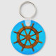 Pormenorizado navio clássico de madeira de vintage Wheel ou Helm, excelente para armadores e marinheiros com fundo azul-oceano.
