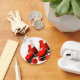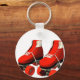 Rolamentos retrorados em botas vermelhas vibrantes com detalhes brancos, costura e lacre.