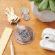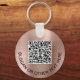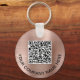 Chaveiro simples moderno para a sua empresa ou organização com um fundo metálico falso em rosa escovado. Insira o endereço de URL do seu site para criar um código de QR digitalizável e adicionar duas linhas de texto personalizado, como nome da sua empresa, slogan, obrigado, etc.