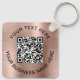 Chaveiro elegante de promocional para sua empresa ou organização com um fundo metálico falso de rosa de ouro escovado. Adicione seu código QR ou logotipo e duas linhas de texto personalizado, como nome da sua empresa, slogan, obrigado ou deixe o vazio.