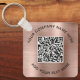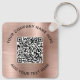 Chaveiro simples e elegante para a sua empresa ou organização, com um fundo metálico esfregado de rosa dourado. Insira o URL do seu site para criar um código de QR verificável e adicionar duas linhas de texto personalizado, como o nome da sua empresa, o slogan, o obrigado ou a saída do vazio.