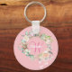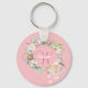 chaveiro de monograma inicial cor-de-rosa bonito, com um belo nome de escrita branca com uma inicial cor-de-rosa elogiante que é enquadrada por uma delicada camada de rosa floral de cor-de-água sobre um fundo cor-de-rosa pêssego. Personalizar para criar um presente especial para o tesouro! Projetado por Thisnotme©