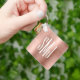 Um simples design de três letras monograma num chaveiro de dois lados quadrados arredondados. Na frente, o design de texto é adaptável às suas necessidades de monograma de 3 letras. O fundo de ambos os lados apresenta um rosa dourado falso e um gráfico de arte digital de folha metálica ombre embutida. Se você quiser.. adicione sua própria foto ou texto ao fundo para criar seu próprio chaveiro personalizado. O efeito de arte digital impressão como uma foto com um design de texto monograma.