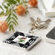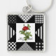 Mantenha-se na moda com este chaveiro quadrado de padrão geométrico preto e branco com uma rosa vermelha chic. Personalize este ícone gráfico e a design do bolinhas adicionando seu nome.