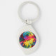 Este chaveiro tem um buquê de flores do arco-íris nele.