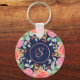 Esta cadeia de teclas florais personalizada apresenta um design de aquarela moderno com rosas corais e rosadas, eucalipto, folhagem e rosa de ouro falso com um monograma. Personalize-o com uma inicial.