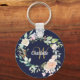 Bonito chaveiro de monograma, com um belo nome de escrita com uma inicial de ouro elogiante, que é moldada por uma delicada camada de rosa floral de aquarela num fundo azul marinho. Personalizar para criar um presente especial para o tesouro! Projetado por Thisnotme©