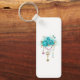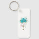 Chave de ouro antiga com rosas de turquesa de tendência, decoradas com folhas de ouro branco e miçangas cor-de-rosa e azuis. Cor agradável. Rosas de turquesa. Ouro branco. Tifania azul.