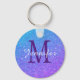 O Ombre Azul Roxo Glitter Esmaga Monograma Nome Chaveiro design de glamour Bonito no botão redondo chaveiro faz um presente de excelente ou ideia de favor para um aniversário, casamento ou qualquer ocasião. Modelo fácil disponibilizado para introduzir o seu próprio nome