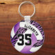 O chaveiro de vôlei desta menina ousada apresenta um padrão de destaque em quatro painéis de vôlei - os painéis de stripes de zebra mais três outros painéis têm um fundo roxo que contrasta com os restantes painéis brancos de vôlei - personalize com o nome do jogador e o número de jersey - por katz_d_zynes