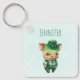 Uma corrente-chave com uma ilustração verde e fofa de um porco de pé nos pés de trás, vestido com chapéu de rico, colete e calças. Muito adorável e perfeitamente adequado para Ruas. Dia de Patrick.