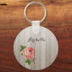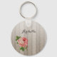 Um chaveiro romântico com um fundo de madeira de casaco curada rústica e uma elegante vinheta de rosa rosa. Personalize esta design feminina adicionando seu nome.