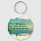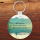 A chaveiro de escritura de aspas inspiradoras representa uma bela fotografia natural de um lago cercado por montanhas. Ele apresenta uma porção do adorado 23º Salmo versos 2-3, "Ele me leva ao lado de águas calmas. Ele restaura minha alma."