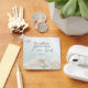 Chaveiro com uma escritura de citação inspiradora retrata um simples jardim botânico com bonito flores cor-de-rosa e um fundo azul macio. Apresenta a Bíblia Verse Psalm 46:10, "Fique quieto e saiba que sou Deus."