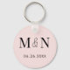Elegante chaveiro monograma para ambos os casais com iniciais de casais e data de casamento com cores pretas e cor-de-rosa Personalizou-o agora para adicionar iniciais de casais e data de casamento.