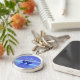 Chaveiro com minha imagem de corações safiras flutuando na água sob um arco-íris.
