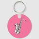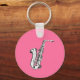Design com ilustração carvical de saxofone em fundo rosa; elegante instrumento musical simples de jazz design