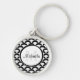 Dê a seu estilo uma borda moderna com este chaveiro redondo superior do teste padrão preto e branco gráfico do scallop da escala de peixes a que você pode personalizar adicionando sua inicial do nome e do monograma. Este design geométrico na moda do teste padrão do escudo é corajoso, contudo na moda.