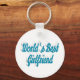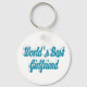 Corrente chave com o melhor namorada do mundo em texto azul-céu 3D. Correntes de chave redondas e quadradas disponíveis em vários tamanhos.