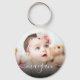 Crie o seu próprio chaveiro redondo personalizado com o seu nome de script moderno personalizado e a sua fotografia favorita do bebê.